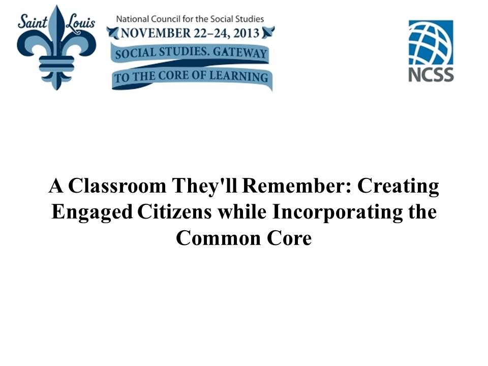 A Classroom They'll Remember: Creating Engaged Citizens while Incorporating the Common Core